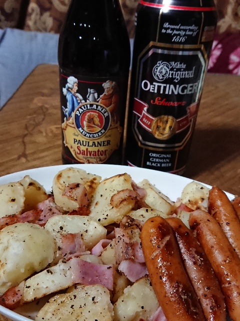 ただソーセージとポテトはなんちゃってソーセージ(実はプリマの香薫)になんちゃってポテト(馬鈴芋は北海道産)だけど。本場ドイツのソーセージなんて、値段高い上に本物なんて専門店に行かないと買えんしな。でもビールは奮発して本物のドイツ産よ。
