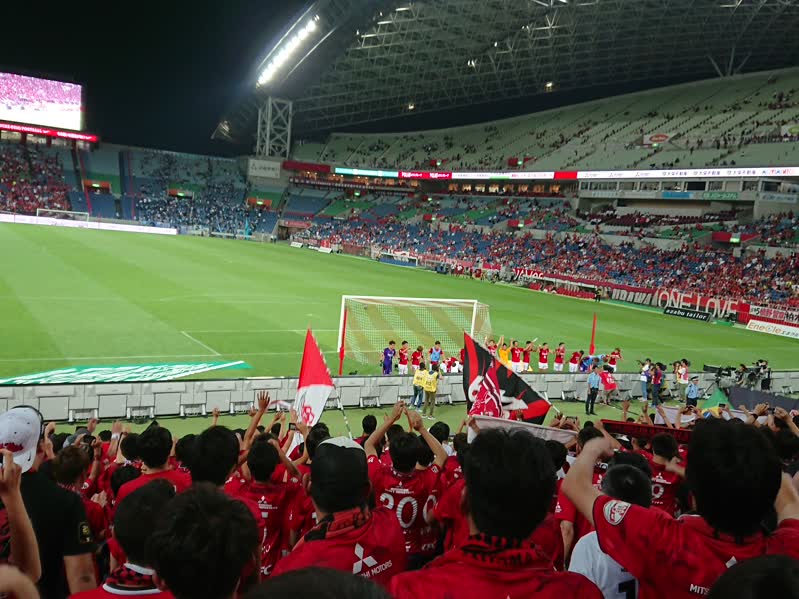 早い時間に、本当にポンという感じで先制して、相手は前節中止もあってのフレッシュな状況。無失点はちょっと無理かな…と思っていたんですが、よく耐えました。前半終了間際のセットプレーや橋岡の大チョンボの時は本当にヒヤッとしましたが、よく無失点で抑えました。橋岡の大チョンボは…おや?啓太?暢久?永田?あれれ?久しぶりに見たぞ!みたいな…確かに橋岡はお疲れでしたね。よくやりましたが、交代した森脇のコンディションが良く見えただけに、もう少し早く決断しても良かったんじゃないかな…まぁ、またこの暑い中で中3日で試合なのでオリベイラも色々考えているんでしょう。森脇は良いシュートを1発撃ちましたが、橋岡もあのぐらいの位置からどんどん狙って欲しいですね。まぁ、昨日は見事な技ありシュートで先制した興梠がヒーローインタビューでしたが、私は3点ぐらい救ってくれた西川もヒーローだったと思います。