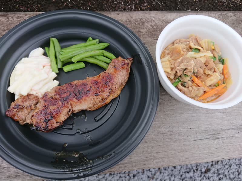 伊勢ノ海部屋のスタミナ焼きだけにする筈が、調子に乗ってステーキまで買ってしまった~。何だよニューヨークステーキって。