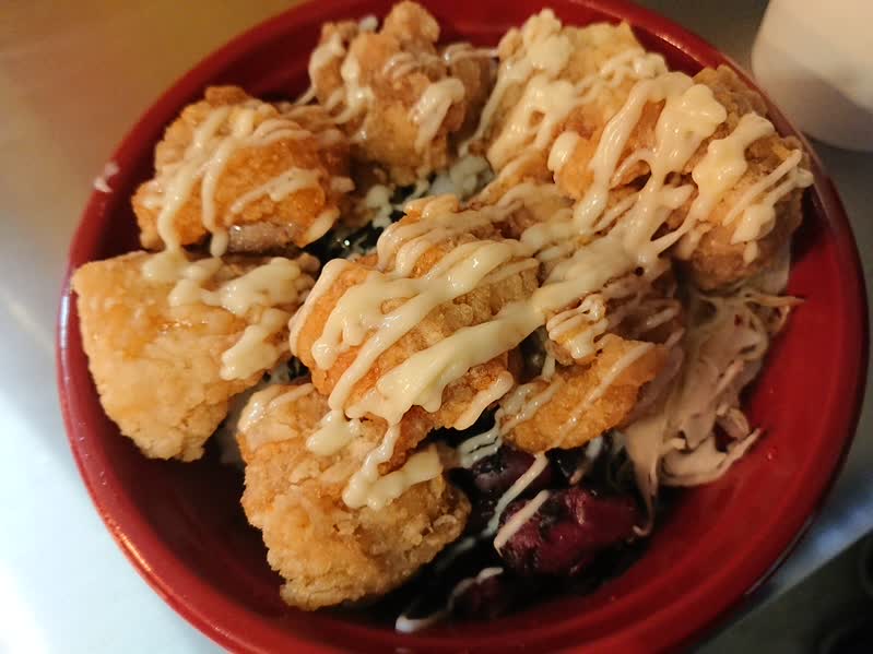 これ美味いんだけど、ソースとマヨネーズはいらんよな。カラアゲの下味だけでじゅうぶん美味いと思うんだけど・・・。