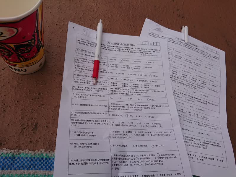 Jリーグアンケート頼みに来た兄ちゃん、5分したら回収しに来ると言っておきながら、1時間経っても回収しに来ないじゃないか!たまにこの類いのアンケート受けるけど、回収しに来なかったのは初めてだ。