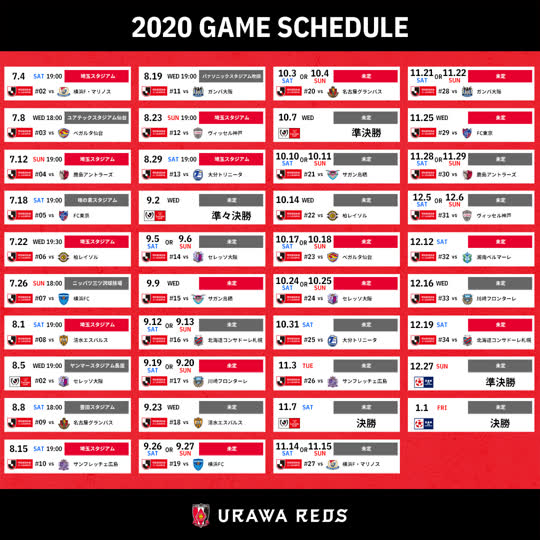 さてJ1も再開日程が正式発表されましたが、やはり当初からの予想通りの超過密日程になってしまいましたね。尤も超過密日程にしなければ12月までに全日程を消化できないので、非常手段として、仕方がないといえば仕方がなかったのでしょう。おっしゃる通り、これでカップ戦まで勝ち進んでしまったら、更に日程がギュウギュウになりますね。今年に限っては嬉しい悲鳴と表現して良いやら、迷う事になりそうですが。