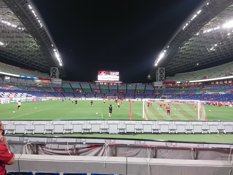 今回、こんな前に振り分けられたから、超目の前で興梠のリーグ戦メモリアル150ゴールや、武藤の技あり同点寿司ゴールが観られたのは良かったが・・・。