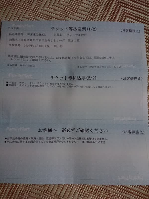 じゃあクレジットカード払いにしろよ、と思われるかもしれないが、自分アナログ人間だからクレジットカードって信用出来ないというか大嫌いで、極力使わないようにしてるんだよね。店頭払込の選択肢があったら、多少の手数料を払ってでも、迷わずそっちを選択する人間さ。広島戦は同じQR限定でもクレジットカード払い限定だったから仕方なくそうしたけれど。