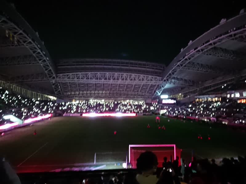 ぬおお、選手入場時に神戸もこんな演出やるようになったのか。昔にF東京もこういうのやっていたよな。選手紹介の時もコンサート会場のスポットライト的なのやっとるし。相手のホームだから何をやろうと文句は言わないが、それにしても目がチカチカするから、こういうのやめてほしいんだけど。