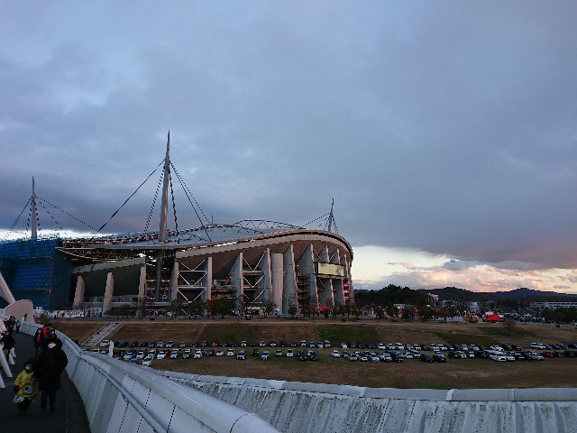 なんて思って最終節セレモニーをやっている名古屋に背を向けてスタジアムを出て例の橋を渡る段階になって、上空は晴れているのに、少し遠くの雨雲から降って来た風に舞って大粒の雨が降って来るし。これは、最終節で様々な別れが発生した事による、サッカーの神様の涙雨だろうか?
