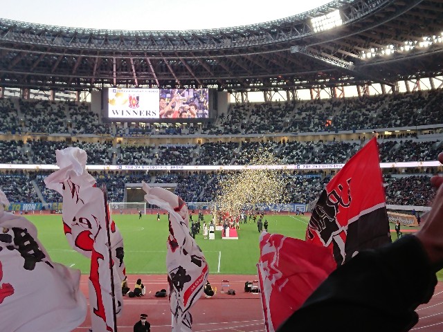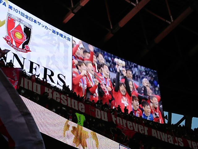 天皇杯優勝おめでとうございます。勝利と優勝間近で後半ロスタイム突入直後に追い付かれた時は一瞬身が打ち砕かれそうになりましたが、これあっての3分後の劇的ゴール、いや本当に良い試合でした。