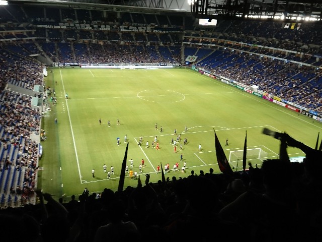 でも甘い事を言う前に、今回言いたいのは、パナスタの完全蒸し風呂状態の2階席に押し込められた我らゴール裏住民の悲惨さとともに、そのパナスタの2階席、暑いは暑いで仕方ないとしても、トラックが無いのに日産スタと同レベルで2階席はすげー観難い・・・。