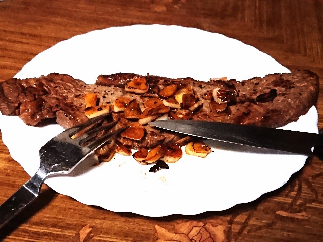 ノー野菜でとにかくビフテキのみ。肉を喰ったら酒、そしてまた肉、酒、肉、酒、肉・・・野菜喰わせろよ!