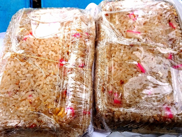 だってこれ2パック計が特盛単品なんだもん。これ1パックだけでも1キロはあるんじゃないのか?というキチレベルなんだが、一番キチな部分は、これで7百円という値段。しかも注文を受けてから作る出来立てで、これ。具材だって種類は卵とチャーシューとナルト入り。さすがに卵とチャーシューは少ないが、かわりに大き目にブツ切られたナルトが大量に入っている。何より味も悪くない。いや美味い。つまり2キロ近いチャーハンで具材も味もしっかりしていて特盛でさえ7百円。一体どんな値段設定しとるんだ???
