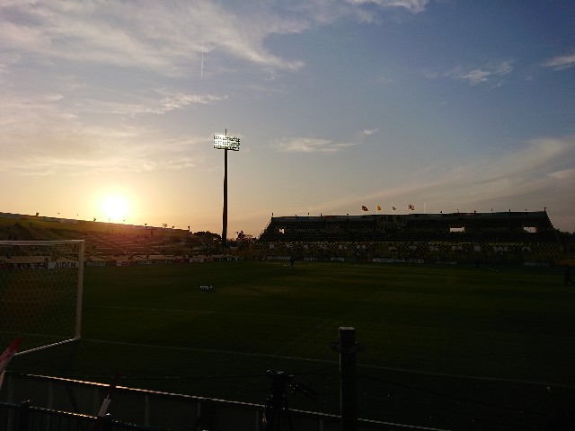 陽が沈んで行く日立台。沈み行く太陽の如く、今の柏のドン底状態と、そしてこれから始まる(柏にとって)悲惨な虐殺ショーを予見していたかのような風景であった。