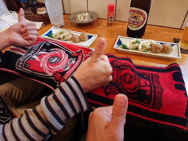 そしたら怪我の功名か、亀岡駅からそのホテルにある途中の、ザ・美酒で入った居酒屋が大当たりで、完全に地元常連相手の店なのだが、仲間が見付けて、元々駅前すら居酒屋が少ない亀岡で、更に駅前から離れたその近所だと、そこしかやってないから入ってんだけど、レッズと妙な関係にあるサンガサポと出会い、また地元常連客とのふれあいも良い雰囲気で、レッズが勝ったから云々を抜きにして、亀岡2回目にして、良い店を見付けてしまった。しかも帰りに、夜食のお土産まで頂いちゃうし。