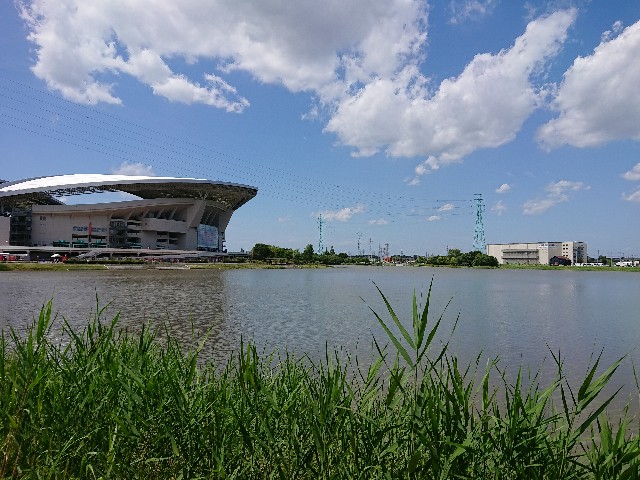 水面に映る埼スタは今まで見る事がなかったので壮大な景色でした。