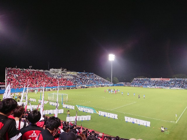 席指定しないで買ったら、こんな端っこになった。そしたら今回、何でどうしてエリア内フリーでシュート撃たないんだ!?という興梠の謎のショルツへのパスが目の前で観られた。あれ確かにショルツもフリーで構えていたが、興梠ならFWとして撃つべきで、1人相手DFがシュートコースに入っていたとはいえ、あの位置からパスはないだろう。ショルツもまさか本当にパスが来るとは思っていなかったのか、それで驚いてダフった?