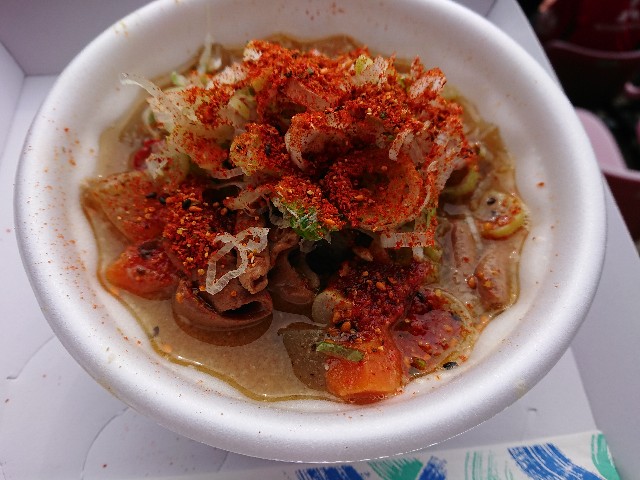 ハム焼きも、もつ煮込みもここに来て毎年のように値上げされては、もつ煮込みは毎回恒例のネギ大盛要求も、増やしてくれる量が年々ショボくなっているから、ネギが駄目ならば唐辛子地獄だ!と、いつもより更にアホみたいにドバンドバンぶっかけ投入したら、もはや何の喰い物かわからなくなる程に真っ赤になり、文字通り唐辛子の海になった(これでも辛党同好会は辛く感じないのだ。舌がおかしくなっている)。
