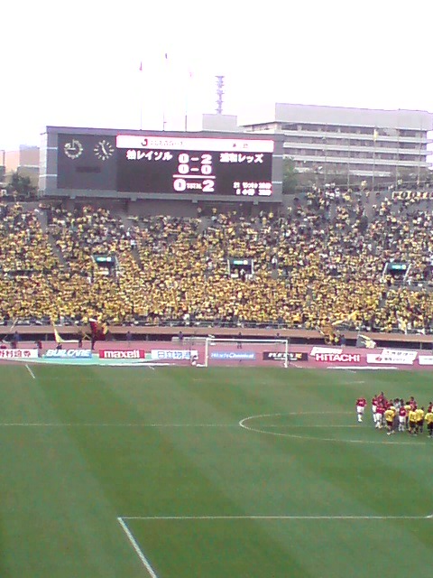 今日のレイソルはアフラックデーなので、試合前には宮崎あおいの「♪アヒルのワルツ」なんかが流れちゃったりして、試合前にこんな萎える歌なんか流して良いのかよ!?なんて思ったりしたんだけど、まあ今回は相手のホームだからそれも我慢する。それより、久々に観るレイソルサポは、J2陥落前と変わらず元気だったねぇ。そのレイソルは李と菅沼が五輪代表に行っていて不在(レッズにとっては大助かり)だけど、ロビーとフランサの元レバークーゼンコンビ対決も楽しみだったし、見所満載のレイソル戦である。