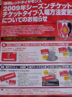 いや、まあここまで悩むのなら紙チケを選択しろよ、と思うかも知れないけど、Jリーグ自体は2011年までに完全ICカード化を目指しているわけだし、すでにセレッソやジェフなどは以前からICカードを取り入れているし、レッズもやがては完全カード化になるんだろうから、今からそれに慣れておくのもひとつの方法かと。