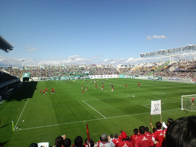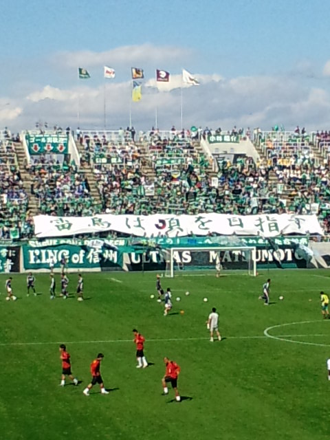 そして対戦相手の松本山雅、(失礼な話だけど)地域リーグだからサポーターもほんの少しかと思っていたら、どうしてどうして意外なほど沢山居て、そしてかなり組織的な応援を繰り広げていたのには感動した。