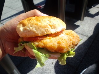 ちょっと大きめチキンのバーガーで、果たしてこれのどこが”山賊”か意味不明なのだが、一応この地域では有名なB級グルメらしい。