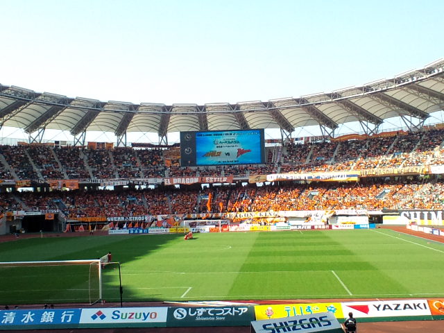 ちなみに今回のエコパ遠征は、前日23時半に西浦和に集合して車で出撃したものの、ゴールデンウィークお約束の大渋滞は、山手トンネル富ヶ谷での事故渋滞に始まり、東名は東名で足柄から富士まで総計4ケ所の事後渋滞で延々ノロノロ。それでも7時過ぎには愛野に着いて、駅前駐車場をゲット出来たのだから、車遠征組の中ではなかなか速かった方かな。