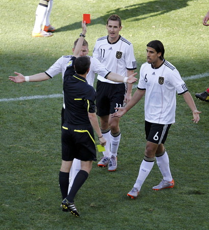 つーか、あの主審、イエティかよ。いくら何でも前半からカード出し過ぎ。そうでなくても、ドイツもセルビアもしっかりボールに行ってるプレーでさえファールにしてるんだから、あれじゃたまらんよ。だいたいあのクローゼのファールで2枚目出すなら、その後のメルテザッカーのモロ相手の足に入っていたプレーがノーファールって、アンタ何処見てるの?あー?