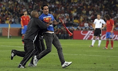 つーか、開始早々ピッチにおバカさんが乱入しちゃったけど、なんだよ今時スーパーマンTシャツってのは・・・
