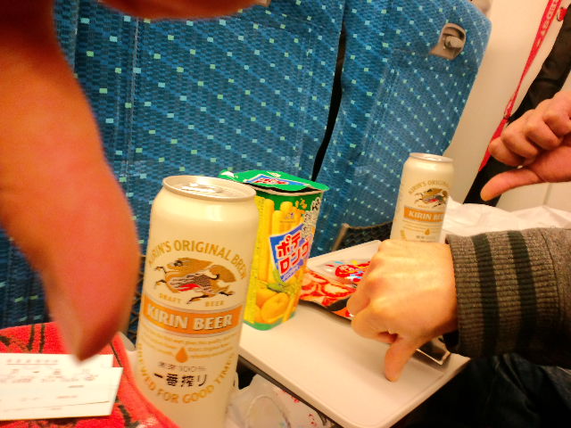 おっと、一番搾りの影に隠れたポテロング、良くゆず胡椒味とわかりましたね。その眼力、恐れ入りました(笑)。ちなみに行きの新幹線でもポテロングしお味を喰ってます(笑)