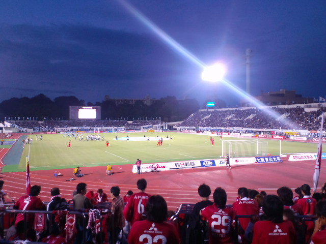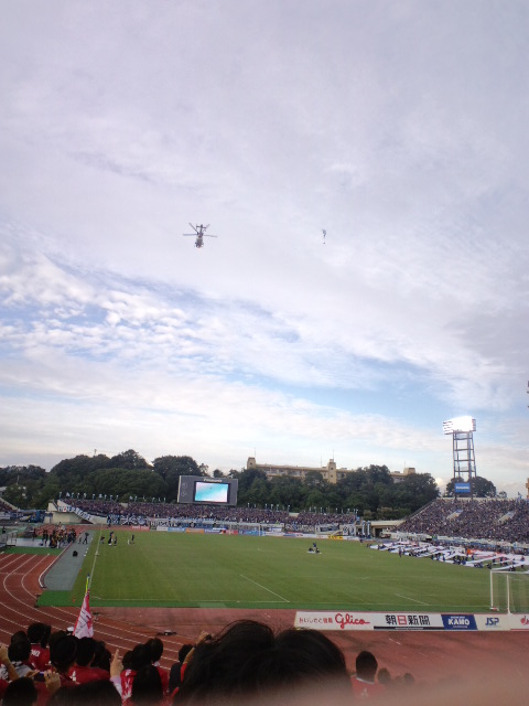 そんなこんなで迎えた万博決戦は、ガンバ20周年記念試合とかで、何もレッズ戦でそんなイベントをぶつけてこなくてもいーじゃんと思いつつ、ヘリからボール投下とか、良くわからんものを観させられると思ったら、投下カウント途端にヘリが遠ざかって行ってしまい、明らかに段取りをミスったガンバに対して、レッズスタンドからは大爆笑と「やりなおせ」コールが。
