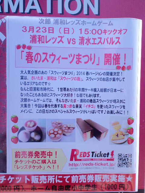 昨日は腰を庇いながらのサポート大変お疲れ様でした。とりあえずサポート可能な状態に復活なされたのは本当に良かったですね。しかも昨日は近場だと案外顔を合わせているかもしれないですね(笑)。で、またやって来てしまうスウィーツ祭りですが、メニュー写真を見ただけで胸焼けがして来ました。埼スタプリンが北側に売られていなくて、本当に良かったと思います(苦笑)。そうそう、こういう祭りこそ、例の彼女さんにオススメなのでは・・・!!