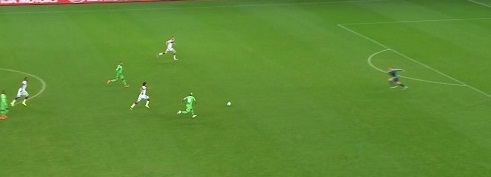既に各方面で話題となっているこの画像のシーンでもわかる通り、敵とボールと自身の位置の開きが半端無いのに、それを平気で飛び出して行くノイアー。余りの守備範囲の広さに恐れの対象として見られてしまうまでに至っている。真面目な話これを凌ぐには、先ずは一瞬での距離感の見極めが大事だが、加えて判断力と決断力と度胸の三拍子が揃っていなければ絶対に出来ない神プレー。そう神懸かっている通り、画像もノイアーの姿だけ影のように・・・この瞬発的な速さ!!