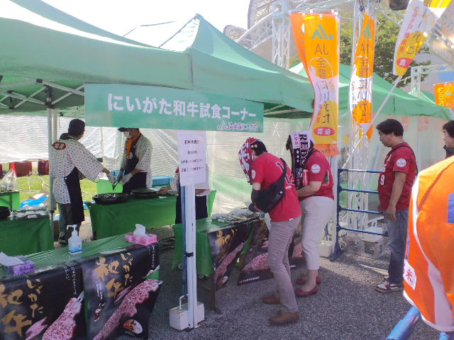 そして新潟和牛、食べましたか(笑)いやはや凄い人気でしたが、普通に売れるレベルの和牛1串分をタダで試食させてくれるなんて、本当に余りの太っ腹さに驚きましたね。その横ではお餅の無料試食もやっていましたし。さすが食どころ新潟です。これだから新潟という地は憎めませんね。