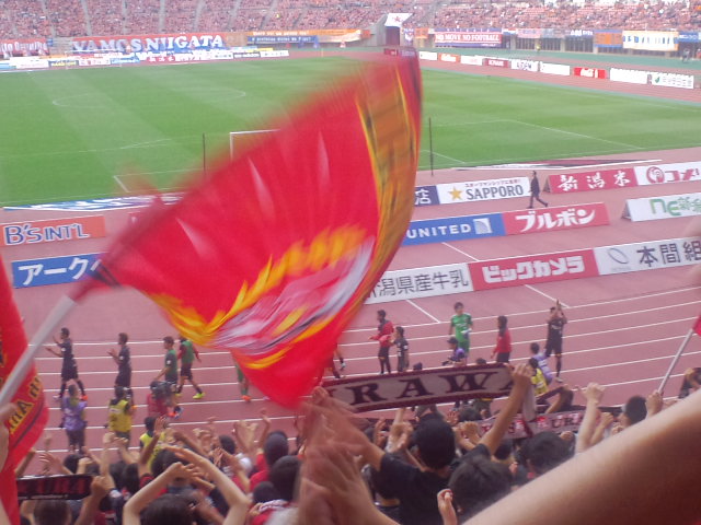 新潟は駅からビッグスワンまで徒歩だと40分もかかるのがネックなのですが、駅前は多くの飲食店で賑わっていますし、万代橋を越えて少し行けば繁華街・古町もあります。試合後の飲み屋は何処も新潟サポとレッズサポで賑わっていて、なかなか良い雰囲気ですよ。それに新潟県民は情の厚さが日本一という県民性でしょうか、それで新潟サポもアウェーサポに対して暖かく接してくれますし、試合後の道や飲み屋では必ず話しかけられては良く会話しますよ。この辺が毎回新潟遠征のひとつの楽しみです。