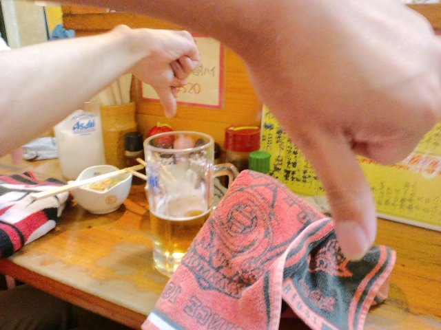 何か常連さんメインの店で最初は「やってしまった」思ったのも束の間、ところがどっこい感じの良いマスターと、何故か香川出身の可愛いお姉ちゃん助手と、そして人懐こそうに話かけて来る何人もの大阪人と、サッカー談議に野球談議にお国談議に、最後は何故かじゃりん子チエ談議によるお好み焼き談議と、訳の分からない酔っ払いの会話が弾みながら、敗戦の大阪の夜は更けて行くのであった。なかなか良い雰囲気で気付けば遅くまで飲んでしまい、翌朝やや二日酔いに。