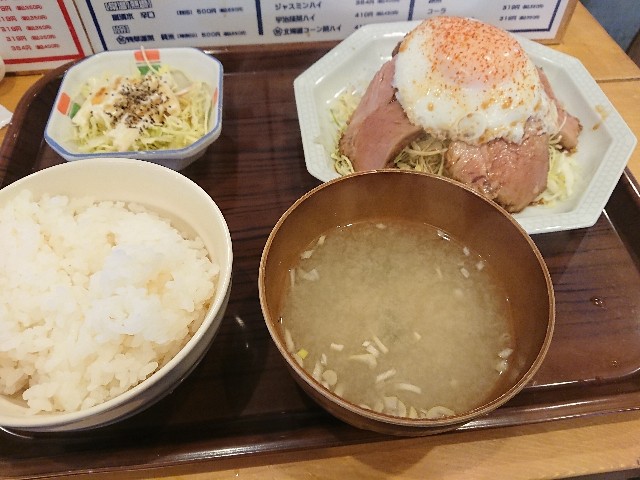 この肉厚チャーシューがドカンと4枚にデカい目玉焼きとキャベツドッサリ、マカロニサラダもあり、肝臓に優しい蜆の味噌汁というボリュームで、特筆すべきはやはり卵とキャベツと白米という3大異常不足&値段高騰食材がしっかり有って、このご時世にそれだけでもアリガタイのに、なんと白米はおかわりし放題。これで700円という異常さ。