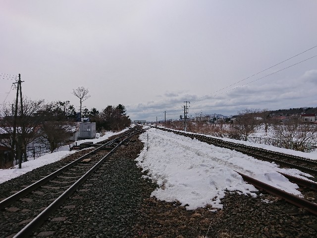 長万部は長年に渡り町民に使われていた貴重な古い歩線橋を2年前に撤去したまま、それ以外の工事は何もやっていない。これでは単に橋をぶっ壊しただけで、これにより線路を渡るには遠い踏切に回らなければならなくなり、町民に不便さを強いているだけである。左の画像は、その踏切から長万部駅を望む形であるが、2年前までこの先のもっと駅に近い部分に、大正だか昭和初期だかに造られた古いコの字形の歩線橋が架かっていた。