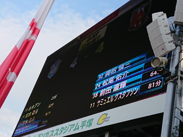 何だかんだ言って、最初は微妙だったサンタナも、2年前のJ1得点王らしく、チームに慣れて来れば、しっかりゴールを決め出すものなんだな。気付けば3試合連続ゴールではないか。しかもPK→技ありロングシュート→セットプレー直と、さすが点取り屋らしく、多種多様な形でしっかり決めるものである。
