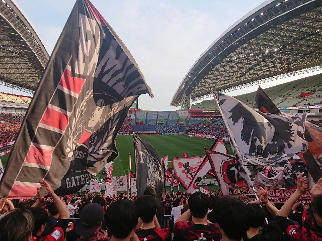 ちなみに前節鳥栖戦の朝から痛み出して、試合後には歩くのも一苦労の激痛レベルだった例の左足アキレス腱部分は、今朝までに、まだ負担をかけ過ぎたり歩き方によってはズキッとした痛みは出るものの、鳥栖戦後の地獄状態だった頃に比べたら、かなりマシになったので、何とか応援できるだろうレベルまで復活途上中と判断して今日も「気合いと根性だ!」で跳び跳ねてはいたが、左足は良いとして、ここ数日その左足の痛みを庇って右足に過度な負担を掛けていたせいで、実は火曜日辺りから今度は右足ふくらはぎまで痛めてしまっていたという悪循環。ああ左足も右足も、もうボロボロや・・・。