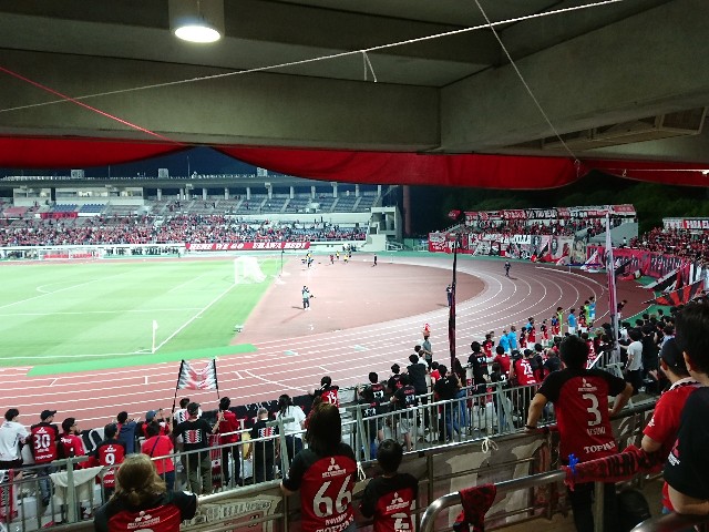 席指定しないで買ったら、こんな端っこになった。そしたら今回、何でどうしてエリア内フリーでシュート撃たないんだ!?という興梠の謎のショルツへのパスが目の前で観られた。あれ確かにショルツもフリーで構えていたが、興梠ならFWとして撃つべきで、1人相手DFがシュートコースに入っていたとはいえ、あの位置からパスはないだろう。ショルツもまさか本当にパスが来るとは思っていなかったのか、それで驚いてダフった?