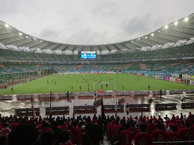 そして今日は、台風で東海道線がどうなるかと懸念されたが、一部の電車で運休は発生したものの、自分の乗った電車はストップせず、少し遅延はしたが何とかエコパに辿り着けたし、何より試合が延期にならなくて本当に良かったよ。同じ静岡でも沼津では延期になったし、そして関東の試合も軒並み延期になったようで。これを考えるとエコパのある袋井は台風通過のタイミングと開催時間が絶妙だったと言えるし、またレッズは今回がホームゲームではなくて良かったな。
