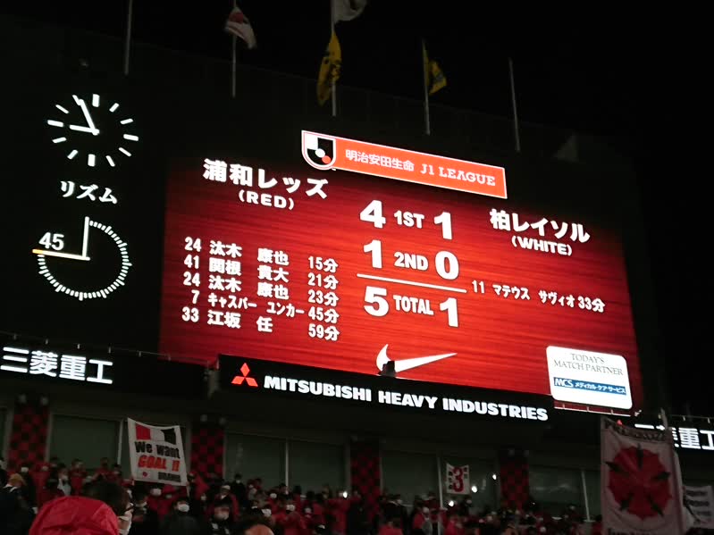 得点/15分・汰木(浦)、21分・関根PK(浦)、23分・汰木(浦)、33分・マテウス サヴィオ(柏)、45分・ユンカー(浦)、59分・江坂(浦)