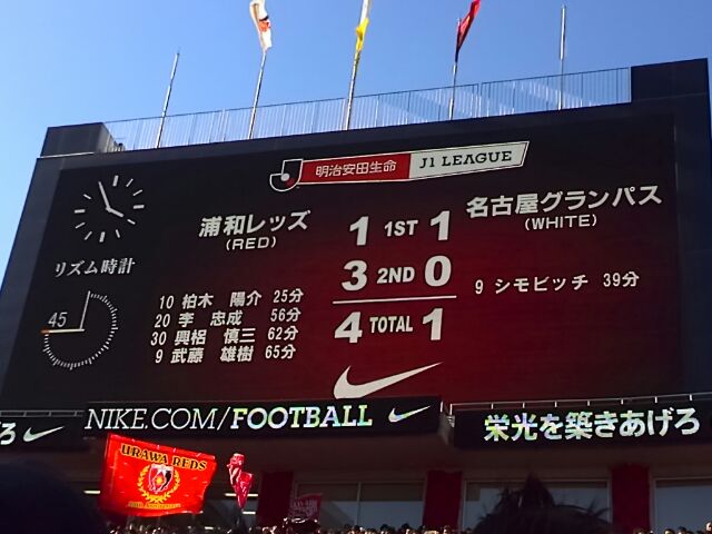 得点/25分・柏木(浦)、39分・シモビッチ(名)、56分・李(浦)、62分・興梠(浦)、65分・武藤(浦)