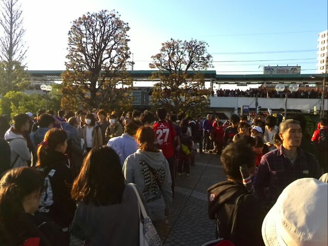 これで今日の名古屋DF陣のように大パニックに陥る東川口駅。だいたい朝はスタジアム入場で並んで、昼はニクの日(下記”おまけ”参照)フェアで並ばされ、それなのに何が悲しくて帰りの電車待ちまで並ばされなければならないんだよ・・・。