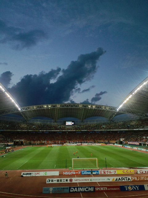 ビッグスワン上空、試合直前に実に怪しい暗雲が・・・これが試合序盤の展開を暗示していたのかもしれない。