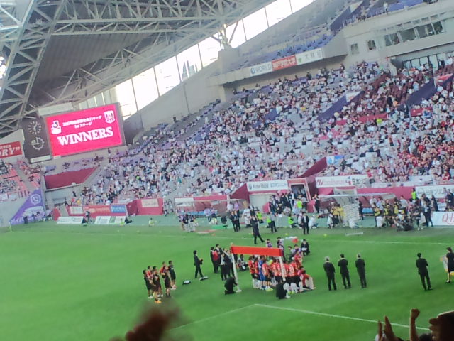 そして、準タイトルではあるが、初めてアウェーで優勝した。何か妙な気分だったけど、過去ホームで何度も敵の優勝杯と敵サポの馬鹿騒ぎを見せ付けられて来たレッズサポにとって、今回は過去の悔しさに耐えたサッカーの神様からの小さなご褒美だったのかもしれない。