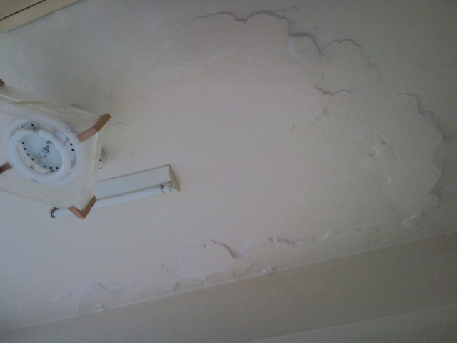 朝起床してから気付いたんだけど、泊まったオンボロ旅館の天井が・・・この真下に頭向けて爆睡していたんだけど・・・さすが連れ込み旅館に毛が生えたようなボロ宿だっただけある、なんて悠長な事を言っていて良いのかわからんが、こ、これ、もう1回デカい地震が来たら、確実に崩れるよな・・・(大汗)