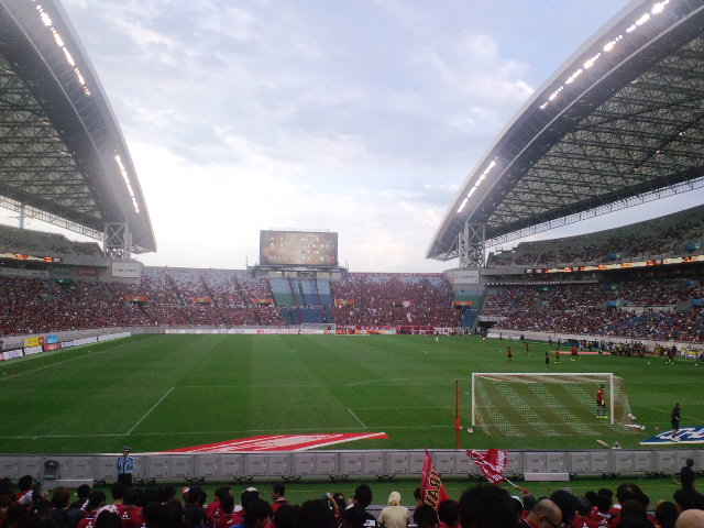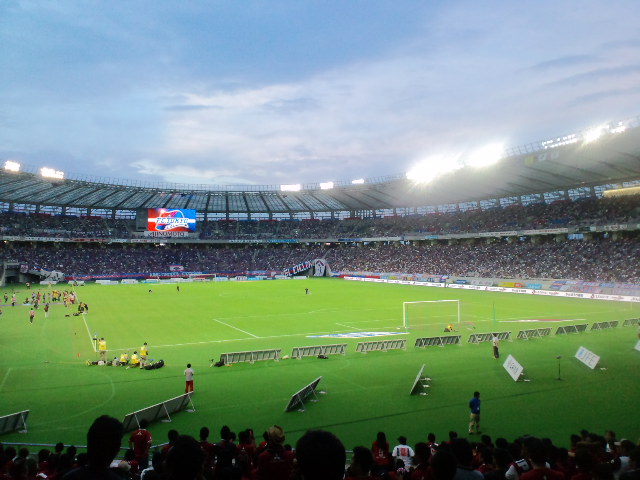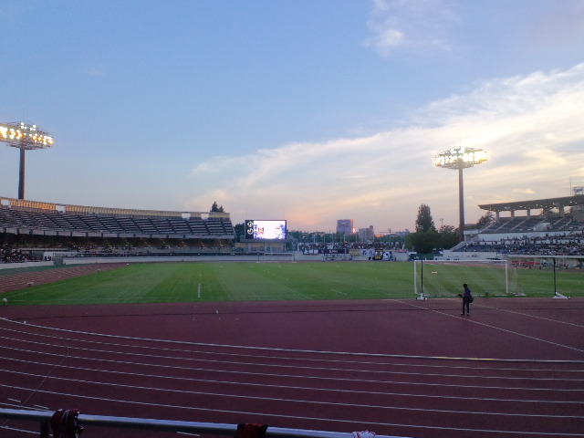 仕事を17時で終わらせて猛ダッシュ出撃。運良く電車の乗り継ぎがスムーズで何とかキックオフ10分前に着いたけど、しかし何故にキックオフが中途半端に18時半なんだ?普通に19時で良いじゃないか!