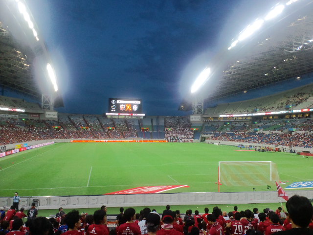 暦の上では処暑でいくらか暑さが和らぐ時期なのに、キックオフに間に合わせようと猛ダッシュしたせいで無駄に暑くなり、これまた360度囲まれて蒸し風呂な暑い味スタで、そして馬鹿試合でも熱くなって、さらに糞審劇場でもカッカ来たから、今日はとりわけ疲れたよ・・・。