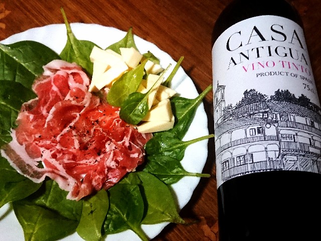 そしてそれを攻めるのは、某スーパーで5百円以下で売っていたスペイン産ワイン「カーサ・アンティグア・ヴィーえーと何とかかんとかント」とかいう、カスティーラ・ラ・マンチャのワイナリー、ボデガス・フェルナンド・カストロで作られたスペインで高級ワインに使用されるテンプラニーニョ種を使用(自分で何を言っているのかわからない)した、ようするにとにかくスペイン産ワインだ!
