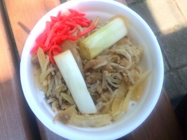しかも本当に深谷ネギを使っているのかが怪しいが、だいたいこれが無ければ単なる牛丼じゃないか!んな事より売り子のネーちゃん、紅生姜を派手にこぼす!客が居ないのに何を慌てているのか、いや久々の客だから慌てたのか・・・。