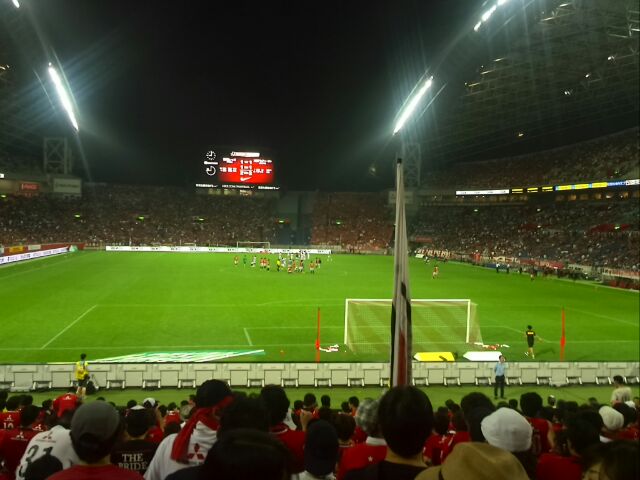 今日は私もスタジアムに行ってきましたが観客数は53,951人と『さいたまダービー』に華を添える大入りでスタジアムで、熱気に包まれていい雰囲気でしたし、柏木の素晴らしいFK、武藤の待ってましたの点で合わせるゴールと、勝っていたら最高の試合でしたが、大宮に安い失点を与えてしまって2-2で引き分けと何とももったいない試合でした。